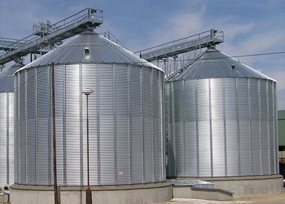 5、由于鋼板倉壁薄導(dǎo)熱性能好,筒壁處糧食易受外界因素影響,在倉壁處或糧堆表面易形成結(jié)露,所以鋼板筒倉不宜儲糧使用,筒倉內(nèi)物料的安全儲存時間,取決于以下因素:物料的品種、水分、環(huán)境溫度以及物料的含雜率。物料水分、環(huán)境溫度、含雜率越高,則物料儲存時間越短。